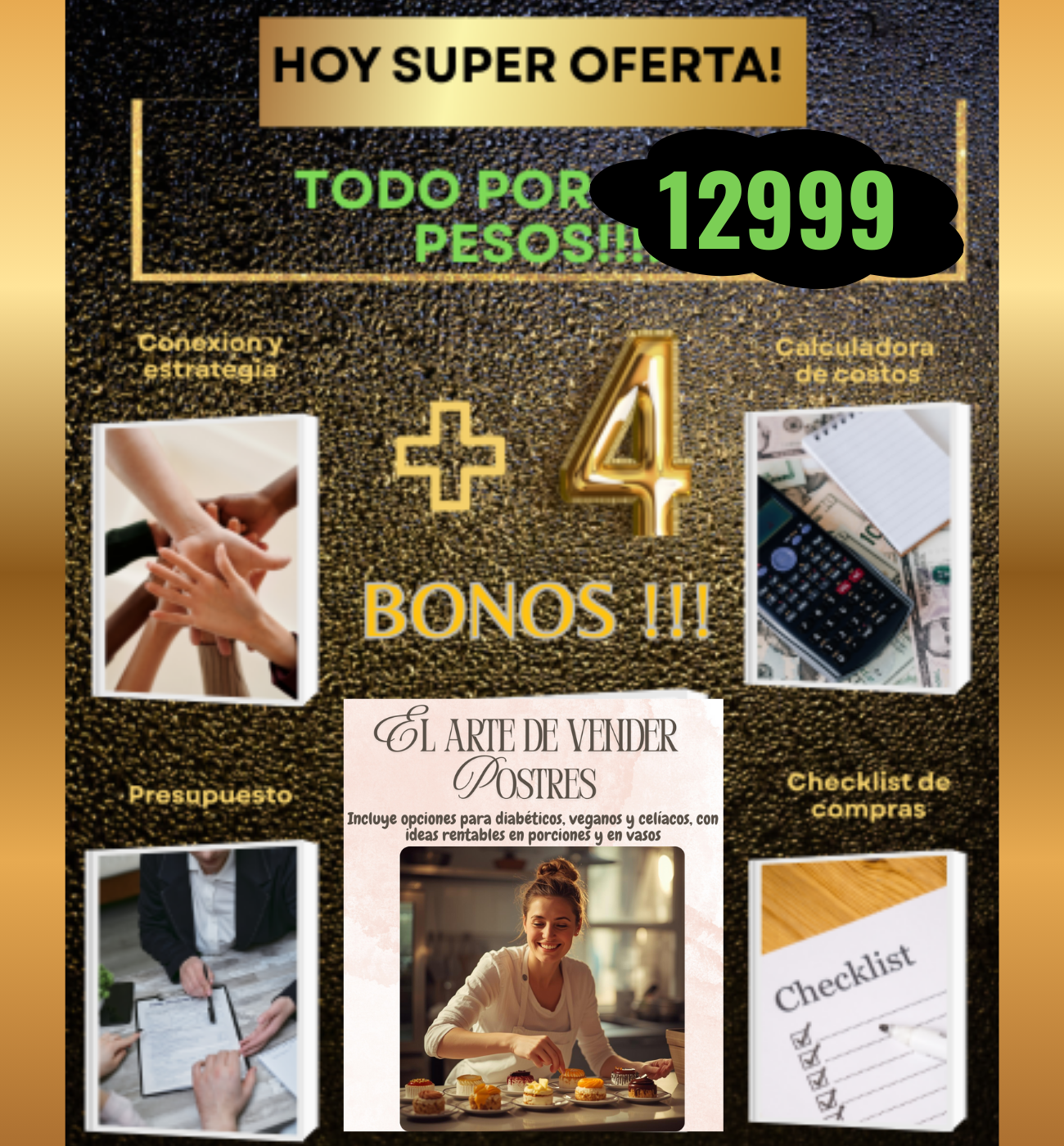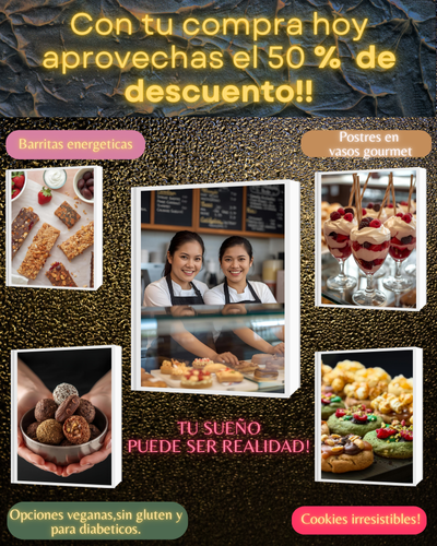 Incluye una selección de recetas irresistibles 🍪🍫, fáciles de preparar y rentables 💰, con opciones sin gluten 🌱.